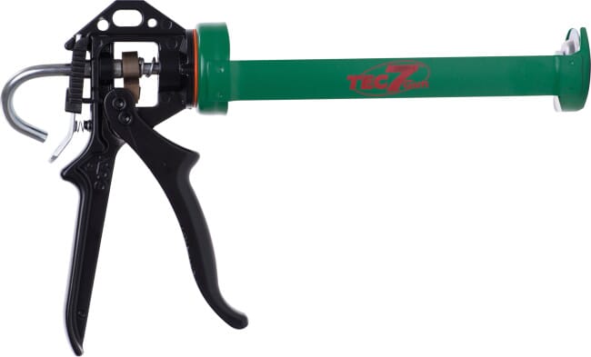 TEC GUN er en solid og profesjonell fugepistol. Enkel i bruk med perfekt balanse og kraftoverføring 18:1 som gir optimale resultat ved lettere pumping og jevnere mengde. Dreibar skål og Anti drip funksjon sørger for høy presisjon. Støtsikker i solid stålmateriale og rustfri. Avmerkede smørepunkter for lang levetid og funksjonalitet (5 års garanti). Kåret til 'Best i test' av Byggnadsarbetaren.