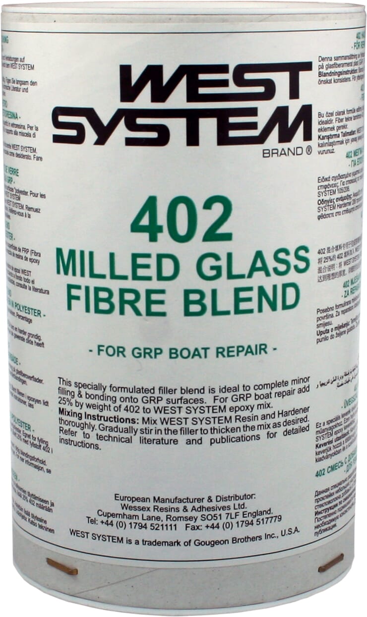 402 Fyllstoff for rep. av sår/skader på glassfiber/polyester. For fylling og liming av mindre skader på glassfiber/polyester.