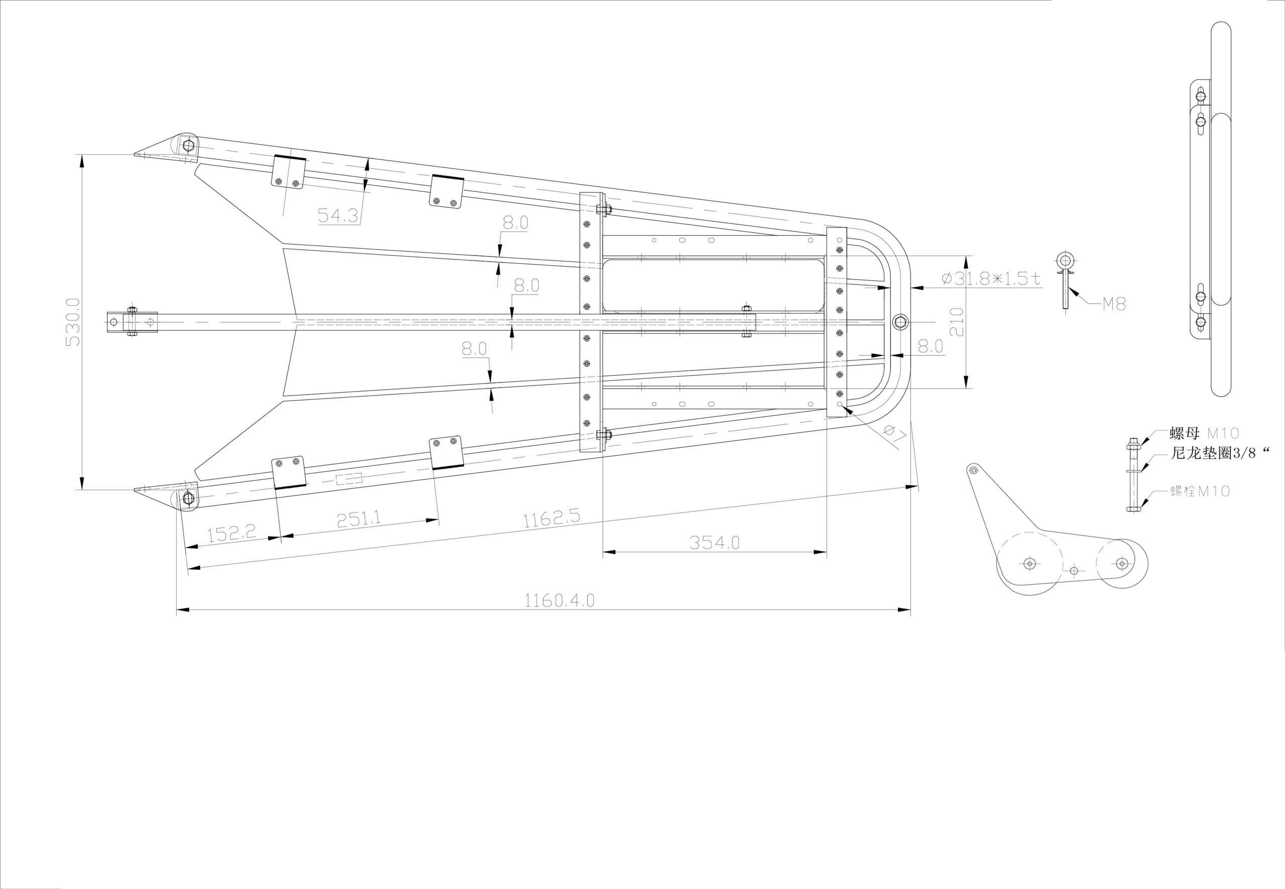 Baugspyd fra 1852 i syrefast stål og teak til seilbåt.
