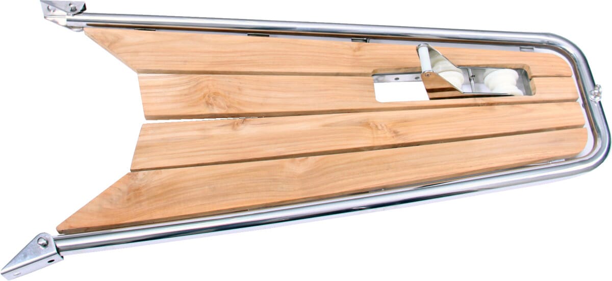 Eksklusivt baugspyd for seilbåt i syrefast stål og teak. Baugspydet passer til alle båttyper.Leveres med eller uten ankerrulle innfelt, babord (B) eller styrbord (S).