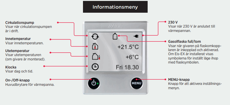 - Ønsket innetemperatur (+5 C til +30 C)