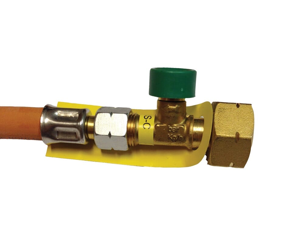 For tilkobling av veggmontert gassregulator til gassflaske (i forbindelse med gassregulatorer som er godkjent for oppvarming mens du kjører, oppfyller denne høytrykksslangen kravene i direktiv 2001/56 / EF om oppvarmingsanlegg til motorkjøretøy).