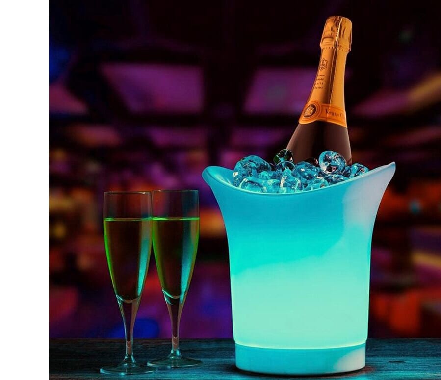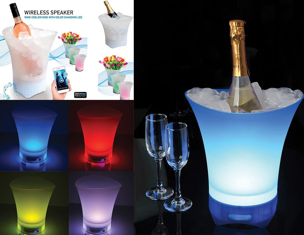 Stemningsfull vinkjøler med moodlight og blåtann/bluetooth høyttaler for strømming av musikk. LED-lysene kan skiftes i forskjellige farger.