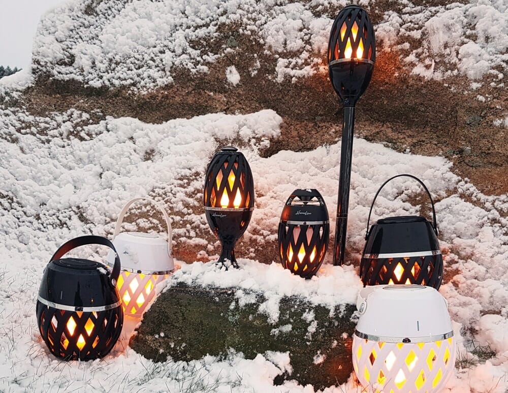 Innebygget blåtann/bluetooth høyttaler for strømming av musikk. Rekkevidde inntil 10m. 60 stk LED-pærer med varmt lys. Innebygd oppladbart Lithium Ion batteri. Ladetid 4-5 timer. Brukstid inntil 30 timer. USB ladeledning medfølger. Mål 17x17x16cm.