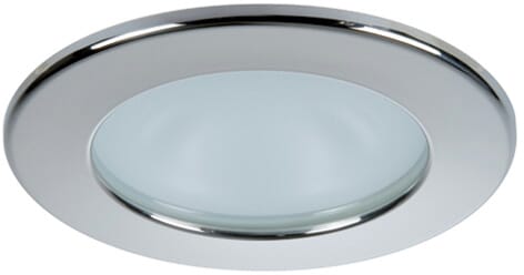 LED-downlight med imponerende lyseffekt og meget lavt energiforbruk. Varmhvitt lys med stor spredning, frostet glass, trekker mindre enn 4W. IP 40 Spenning: 10-30VDiameter: 82 mmUtskjæring: Ø 65 x D 33 mm