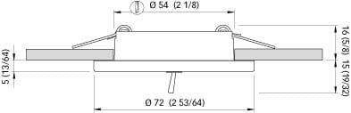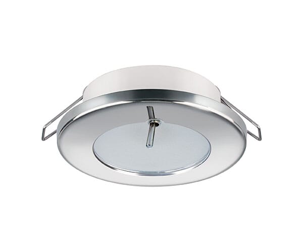 Downlight med sirkulær ramme, laget av 316 AISI rustfritt stål med satinisert anti-sjokk materiale diffuser, ideell for tak- og veggmontering.