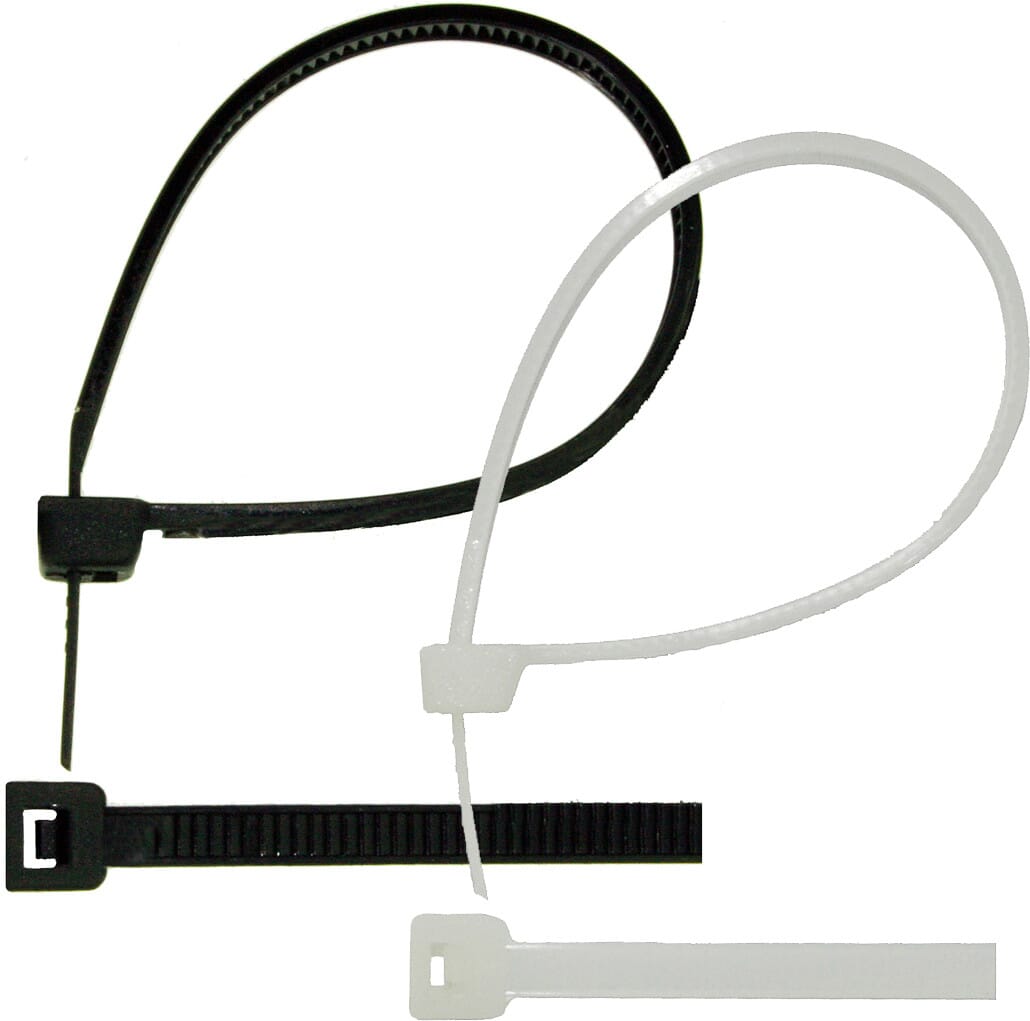 Festestrips som finnes i hvit eller sort nylon. Motstandsdyktig mot korrosjon og syre. Kan brukes i temperaturer fra -35°C til 85°C.Leveres i poser av 20 stk.