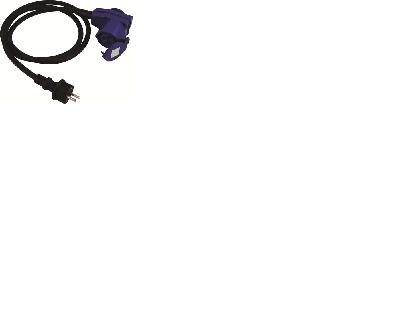 Landstrømkabel 3 x 2,5 mm2. Schuko han - vinklet CEE hun + Schuko hun på baksiden.