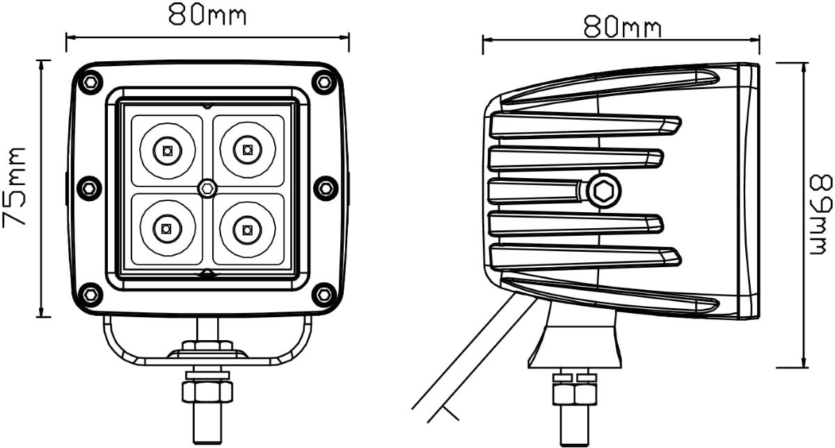 Kraftig spot arbeidslys fra 1852 med brakett i pulverlakkert stål, hus i aluminium og linse i polykarbonat.