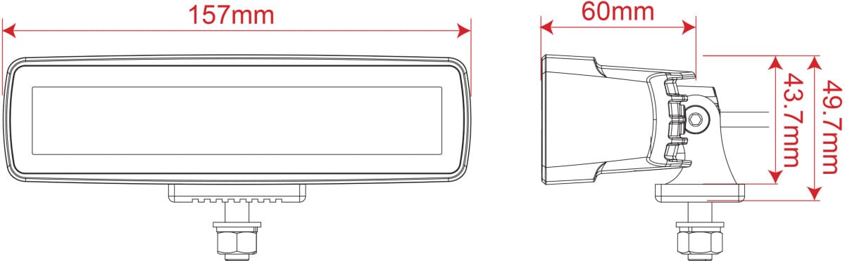 Kraftig flom arbeidslys fra 1852 med brakett i rustfritt stål og linse av polykarbonat.