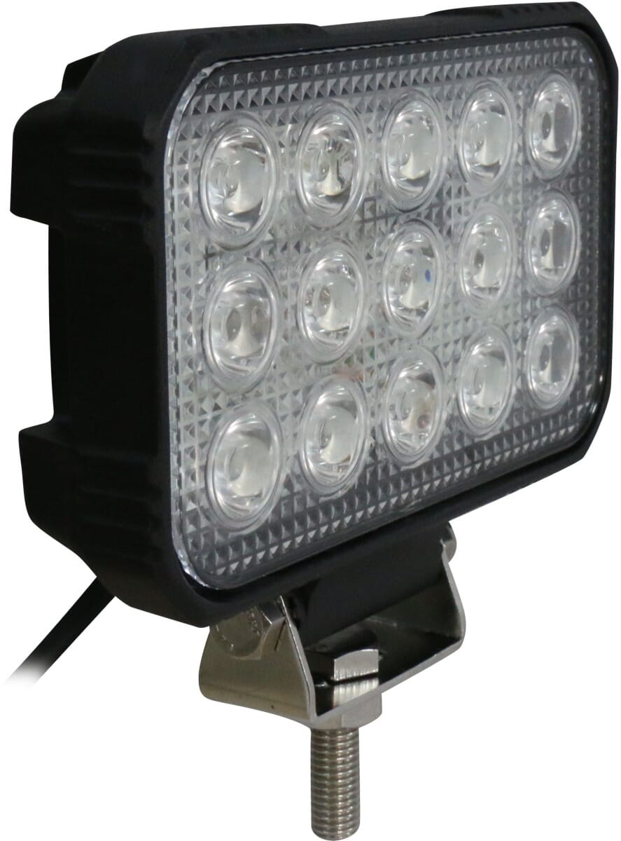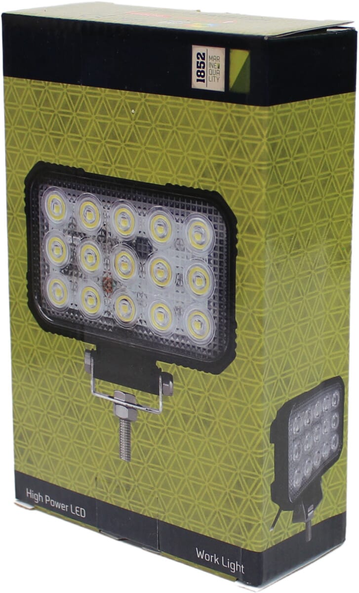 Kraftig spot arbeidslys fra 1852 med brakett i rustfritt stål, hus i aluminium og linse i polykarbonat.