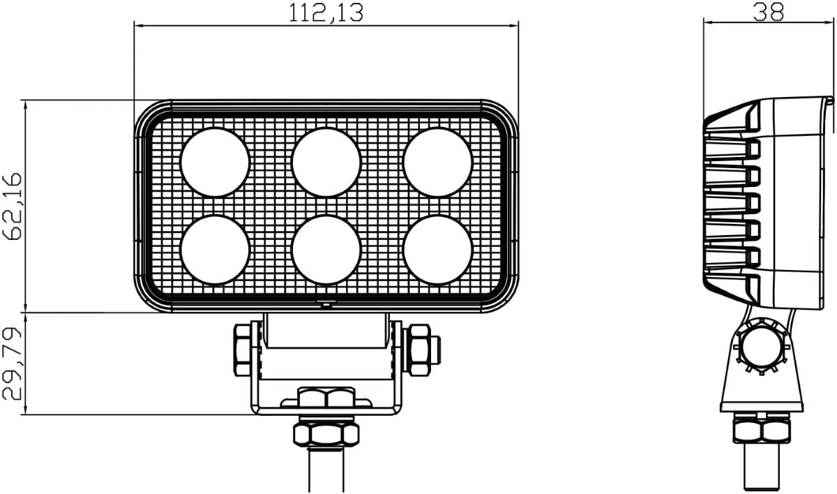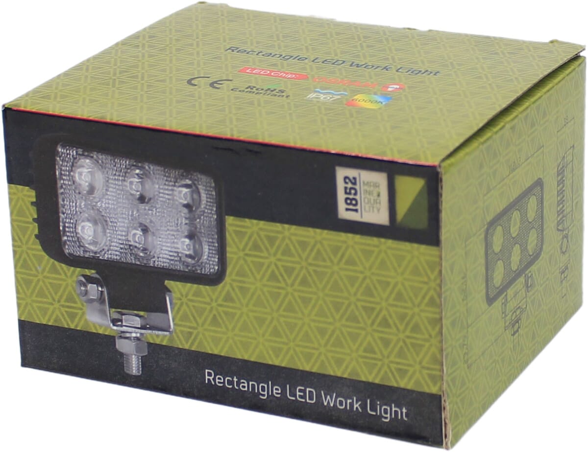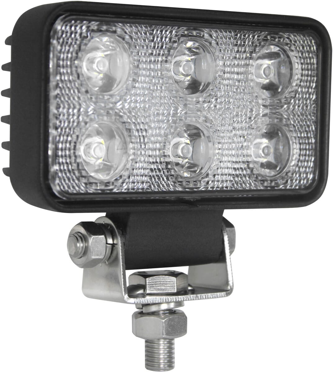 Kraftig spot arbeidslys fra 1852 med brakett i rustfritt stål, hus i aluminium og linse i polykarbonat.