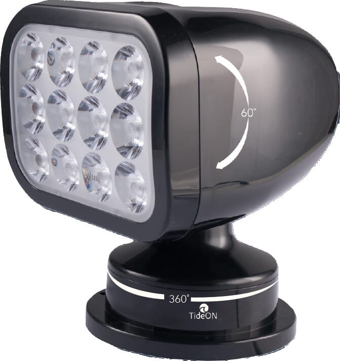 TideONs lyskaster er et kraftig søkelys, som yter hele 2700 lumen lysstyrke, og kan lyse 400 meter. Den kan rotere 360° horisontalt og 60° vertikalt. Lampen er ideell til å finne bøyer, sjømerker og til generell belysning ved nattseilas.