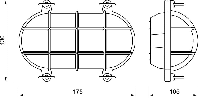 Skilpaddelampe, oval - elektrisk. Messing. IP54.- Spenning: 12/24/220V- Maks: 60 watt