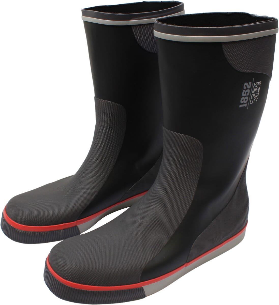 Støvelen er av myk gummi og innsiden er foret med hurtigtørkende polyester og har en uttagbar innersåle for enkel tørking. Yttersålen er en sklisikker razor-cut såle som ikke setter merker og sitter godt på dekk. Disse 1852 gummistøvlene er 100% vantette og har forsterkninger på hæl, vrist og tå.