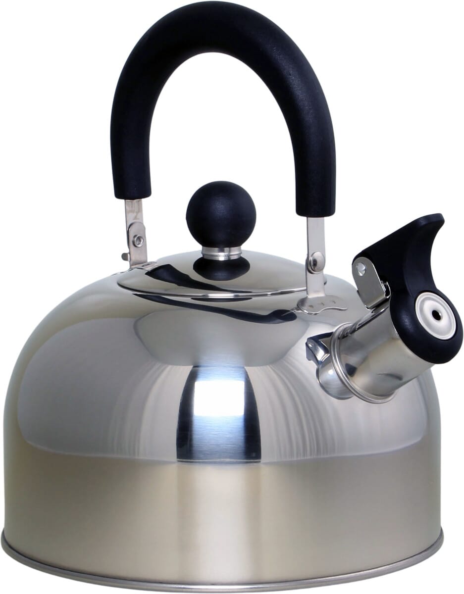 Lekker kaffekjele laget i høyglanspolert rustfritt stål. Kjelen plystrer når vannet koker. Den fungerer på alle typer koketopper, inkludert både gassbluss og induksjon. Kjelen passer til bruk i båt, campingvogn, bobil og hjemme på kjøkkenet.