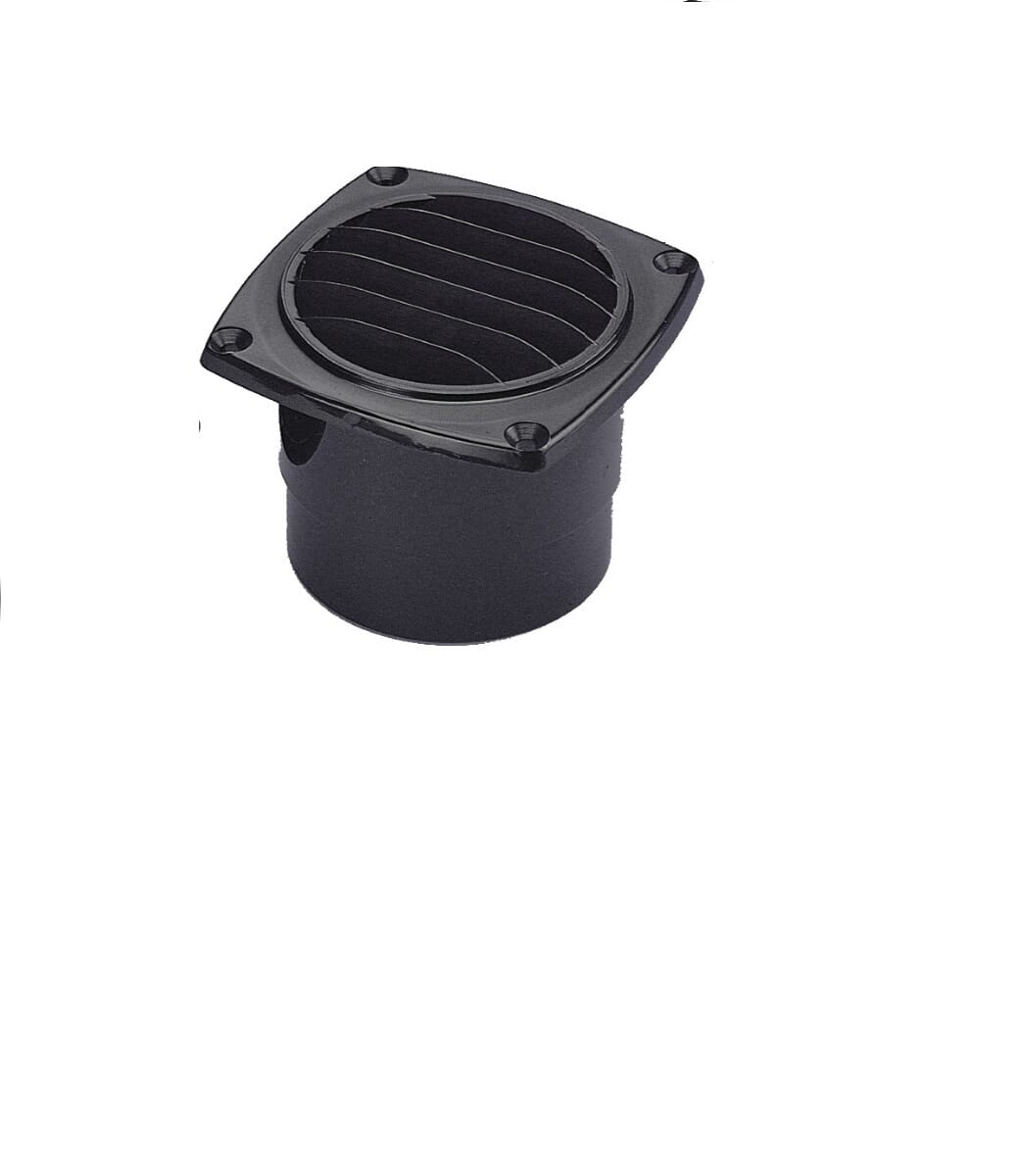 Ventilasjonsrist i plast med slangestuss for 75 mm (3") slange. Leveres flat eller med rett eller vinklet slangestuss.- Ytre mål: 90 x 90 mm- Avstand skruehull: 70 mm- Slangestuss: 75 mm (3")