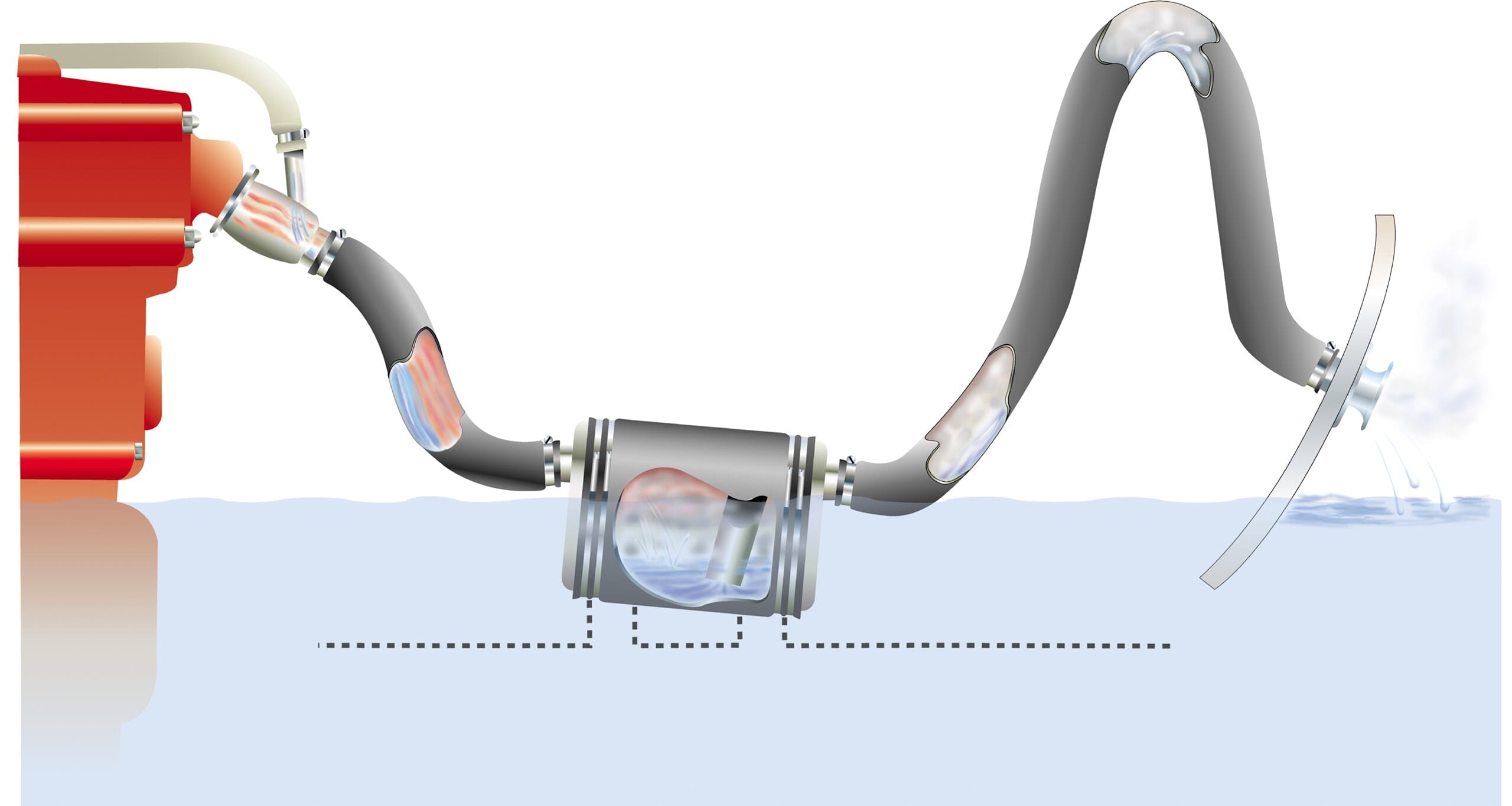 Lydpotte fra DPC er blant de beste på markedet. Systemet kan brukes både på seil- og motorbåter. Lydpotten/vannlåsen er konstruert med 2 rustfrie stålender montert med en gummibelg. Fylt med vann gir den en enestående lyddempning og et minimum av motstand. Gummibelgen er godkjent av RINA, LLOYD og VERITAS.