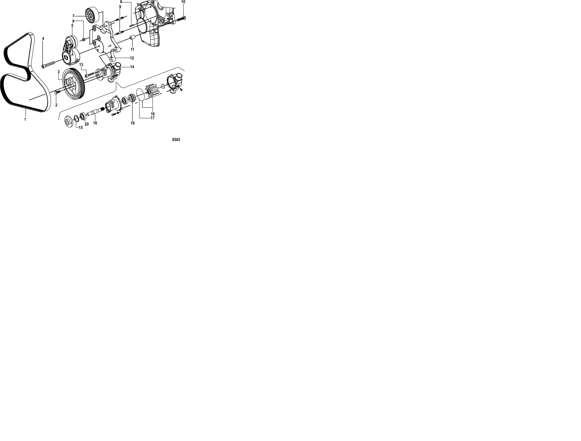 Sjøvannspumpe til Mercruiser CMD QSD 2,0/2,8 med Jabsco Pumpe