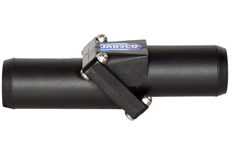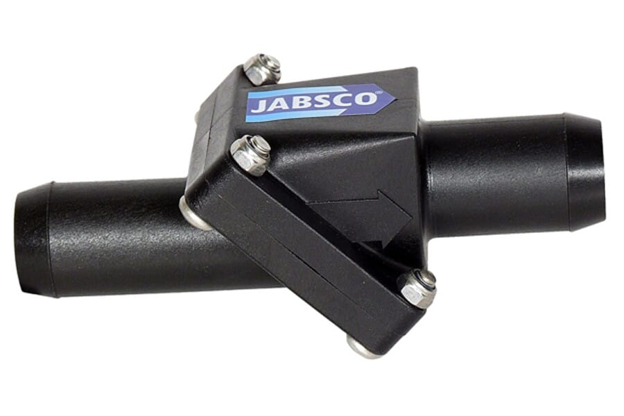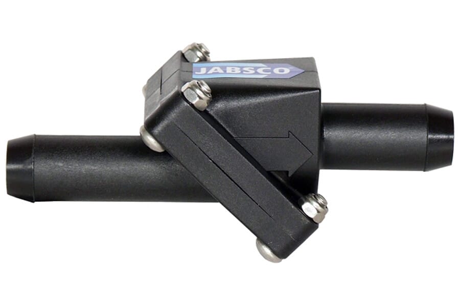Jabsco Amazon. Tilbakeslagsventiler hindrer vannet i å renne tilbake, og sørger for bedre sug fra første pumpetak.
