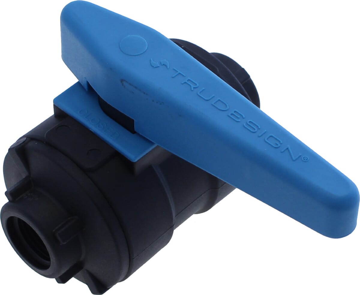 Kuleventil i kompositt med innvendige gjenger BSP. Mulighet for låsing med hengelås i lukket stilling.