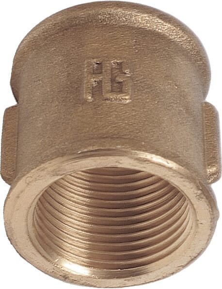 Rett kopling/rørmuffe "hun" med innvendige gjenger. Laget i messing. ISO 228/1 (BS 2779).