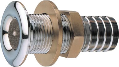 Skroggjennomføring med slangekobling i forkrommet messing. ISO 228/1 (BS 2779).