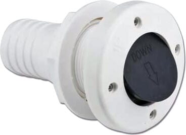 Nylon skroggjennomføring med tilbakeslagsventil i gummi for 38 mm (1 1/2") slange.Utskjæringshull: 47 mm