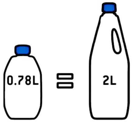 Leveres som konsentrat i en praktisk liten flaske, noe som gir lavere vekt og tar mindre plass, men gir lik effektiv mengde som større flasker.