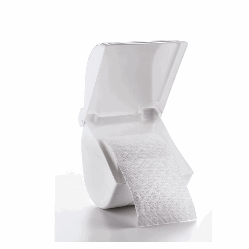 Toalettrullholder fra Trem i hvit plast. Holder rullen tørr i rom det er mye fukt og damp.13x15 cm. Trem Z1813150
